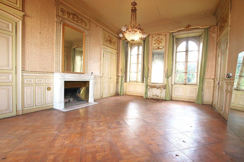 Dans l'aile droite, l'ancien salon de chasse (env. 24m2) avec ses voûtes en stucs et sa sortie indépendante.