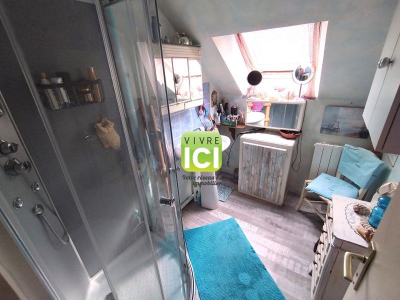 La maison, mitoyenne d'un côté et en limite de propriété de l'autre, est répartie sur deux niveaux :