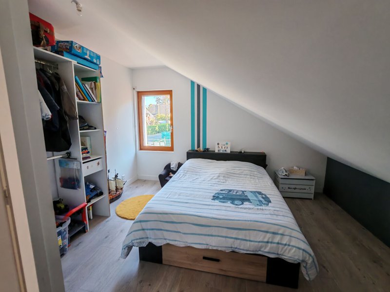 A l'étage, une mezzanine pouvant faire office de salle de jeu ou bureau donne accès à deux chambres, des toilettes et une pièce à rénover pouvant être aménagée en 4ème chambre.