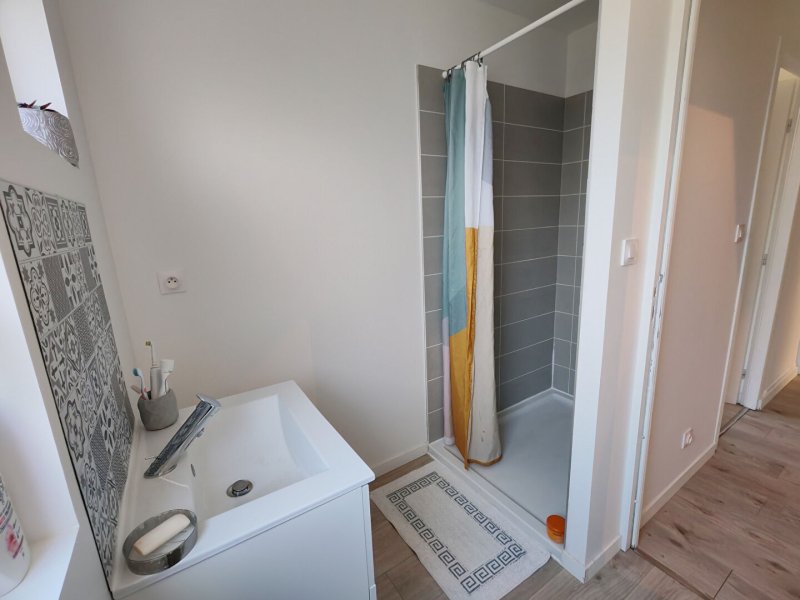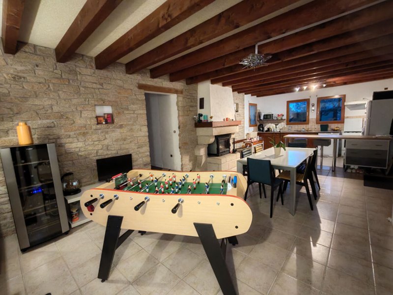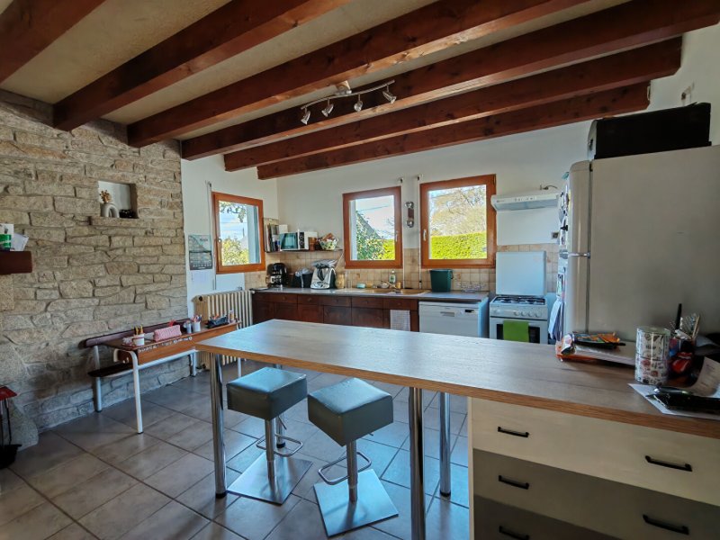 Elle se compose d'une pièce de vie chaleureuse avec cuisine aménagée ouverte et un coin salon mêlant charme de l'ancien et rénovation avec goût.