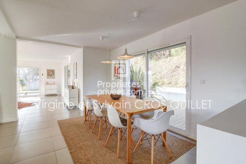 Maison lumineuse avec une belle exposition offrant une grande pièce de vie ouverte sur plusieurs terrasses et ambiances selon les expositions souhaitées : pergola bioclimatique, terrasse intimiste, terrasse coin repas etc..la pergola donne accès à une piscine dans un environnement aménagé et végétalisé,