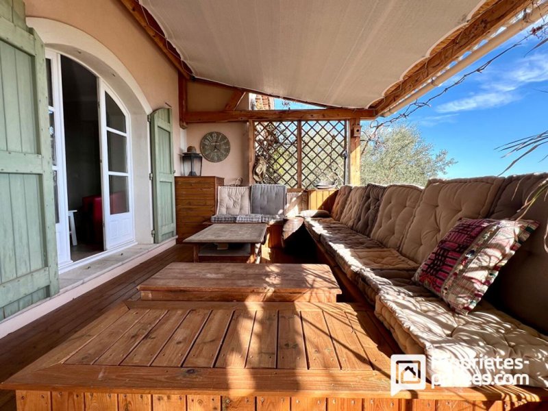 Les pièces de vie s'ouvrent sur une grande terrasse couverte, véritable prolongement de la maison, idéale pour profiter du panorama et des belles soirées provençales.