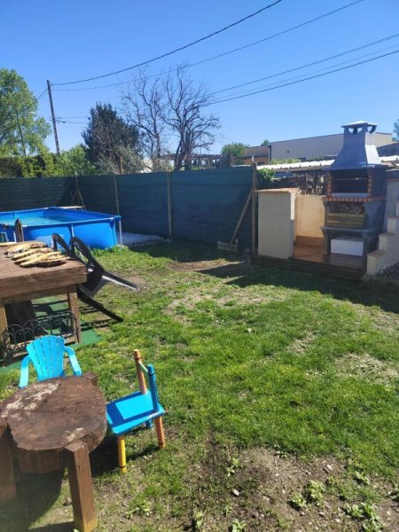 Un terrain attenant de 104 m2 sur lequel est posé une piscine hors sol fait partie de ce bien.