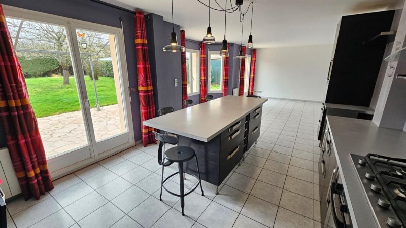 Entre Gambais et St Léger en Yvelines / Maison lumineuse de 150 m2 habitables parfaitement entretenue, comprenant au rdc : entrée, double séjour de 54 m2 environ avec poêle à bois, cuisine ouverte aménagée et équipée, cellier / buanderie, chambre avec coin douche, wc séparé, garage intégré avec porte motorisée. A l'étage : palier desservant 3 chambres dont une spacieuse de 32 m2 environ ( possibilité de faire une chambre supplémentaire ), salle de bains avec douche et wc.