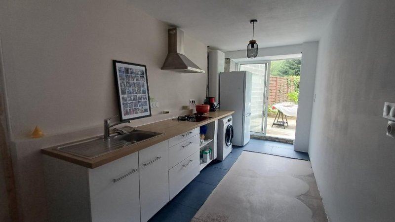 Au rdc , une pièce de vie avec cuisine ouverte , une chambre , salle d'eau et WC. A l'étage , une grande pièce à aménager. Un jardin au calme avec une petite dépendance. Huisseries PVC, coin cuisine neuf . électricité aux normes au rdc. Quelques travaux sont à prévoir. Prix: 53 990 euros HAI à la charge vendeur