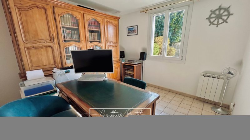 Dès l'entrée, un hall indépendant mène à une cuisine aménagée et équipée, ainsi qu'à un lumineux salon-séjour de 39 m². Le rez-de-chaussée comprend aussi deux chambres, une salle d'eau et un WC indépendant.