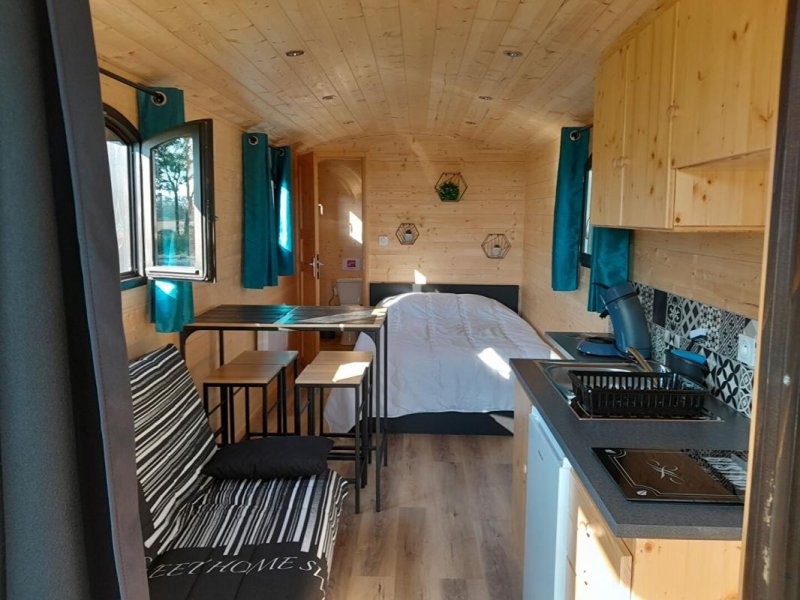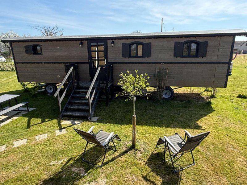 Sur un terrain de plus d'un hectare avec un plan d'eau, sont installées des roulottes équipées, qui sont proposées à la location de mars à septembre. Trois emplacements supplémentaires sont prévus pour doubler la capacité d'accueil.
