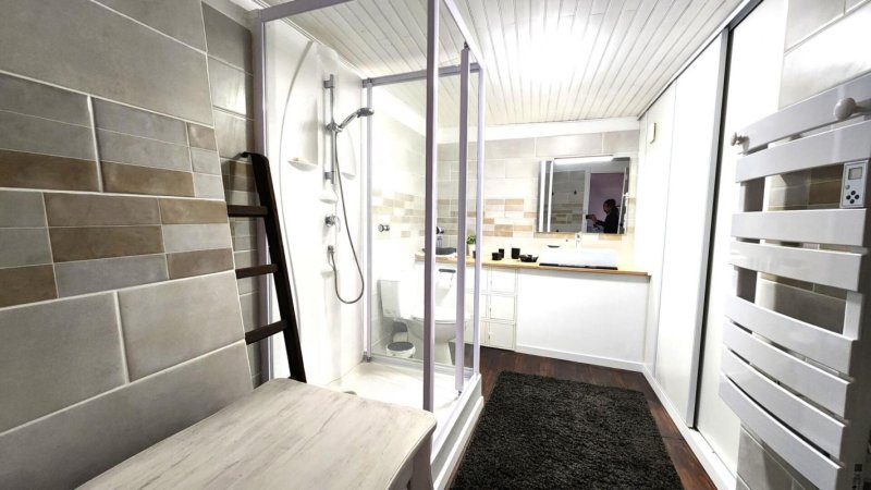 Un second logement d'environ 65 m² avec accès indépendant mais également accessible par une cour intérieure, avec cuisine, salon, deux chambres, 2 salle d'eau et wc.