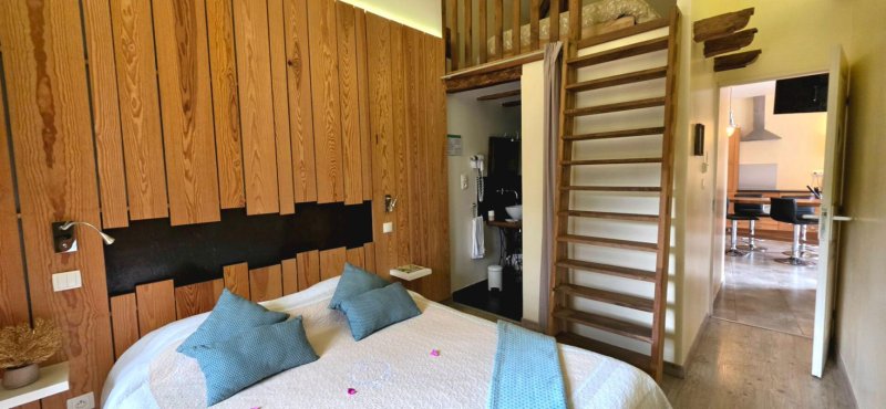 Un gîte indépendant avec 2 suites , cuisine équipée, mezzanine, terrasse indépendante.