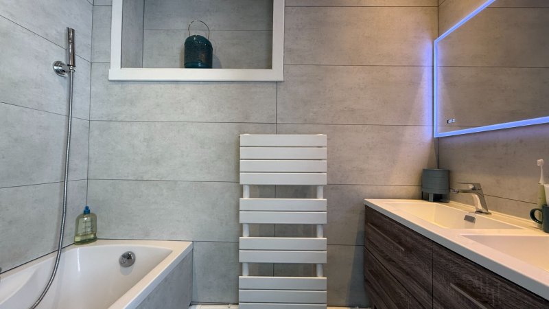 À l'étage, l'espace nuit se compose de trois chambres confortables, dont deux avec leur propre salle d'eau privative , un vrai plus au quotidien. Les combles aménagées offrent un espace supplémentaire, à imaginer selon vos besoins : salle de jeux ou simple coin rangement