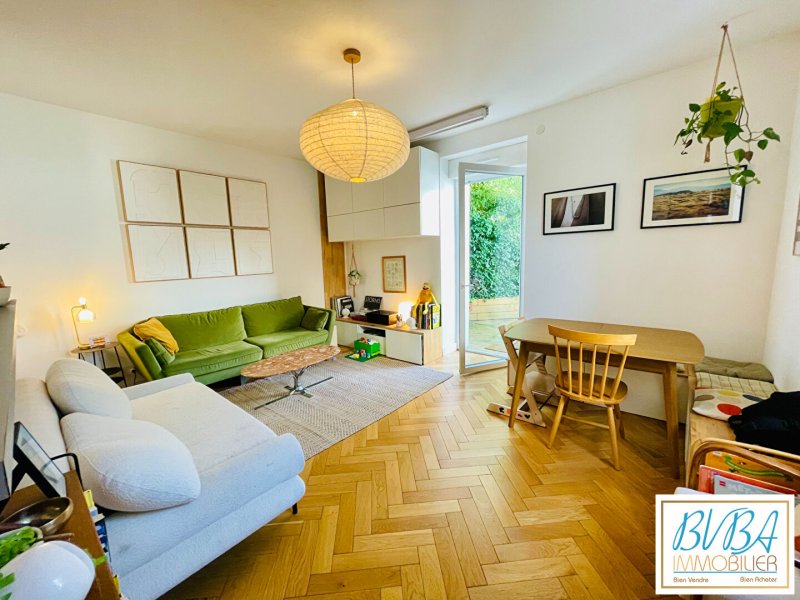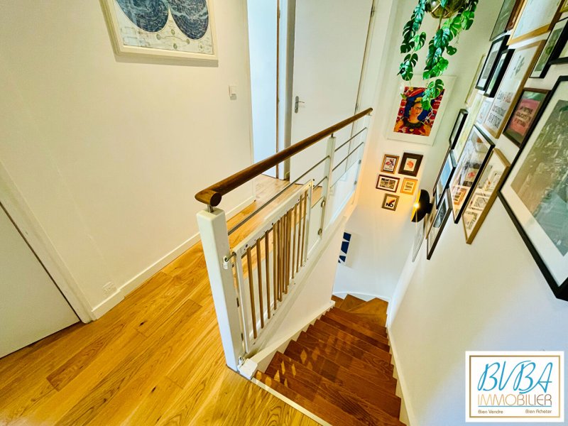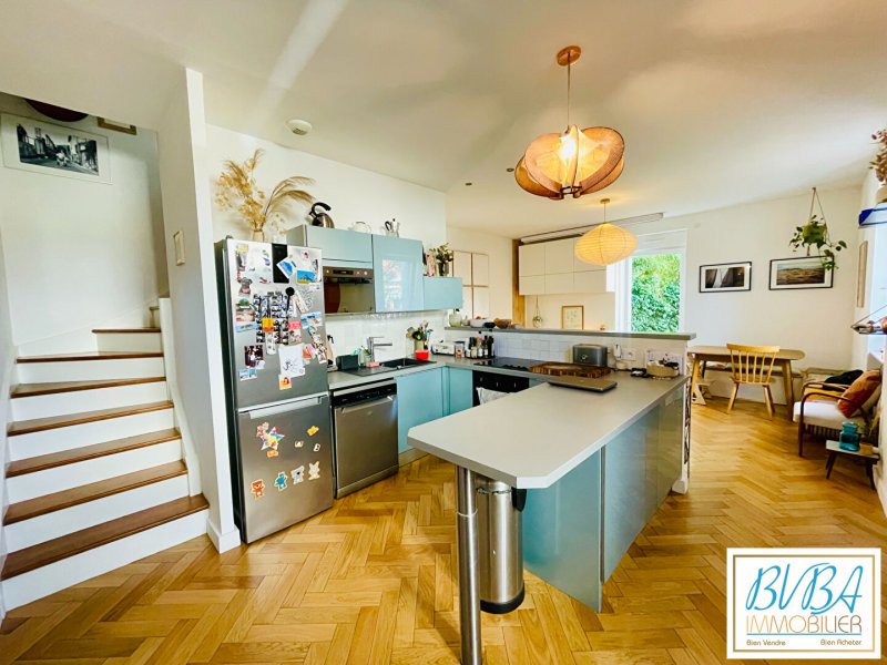 Au rez-de-chaussée, la pièce de vie ouverte réunit cuisine, salon et espace repas dans une ambiance conviviale et lumineuse. La porte vitrée prolonge le séjour vers une jolie terrasse exposée Ouest et son jardinet, un véritable cocon pour profiter des fins de journée en toute tranquillité. Une buanderie pratique, un placard d'entrée et un WC complètent ce niveau pensé pour le confort du quotidien.