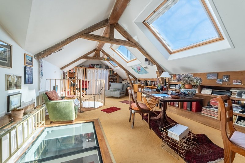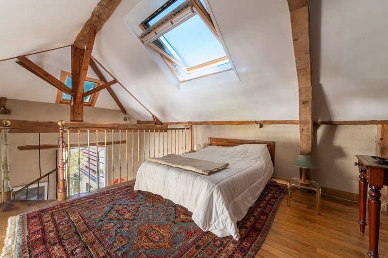 Le rez-de-chaussée se compose d'une entrée, d'une première chambre, d'une salle d'eau et WC indépendant. Au premier étage, la pièce de réception "cathédrale" avec plus de 5 mètres de hauteur sous plafond donne au lieu une atmosphère singulière. Il est complété par une cuisine et une salle de bains avec WC. Le dernier étage offre deux vastes chambres avec chacune une mezzanine.