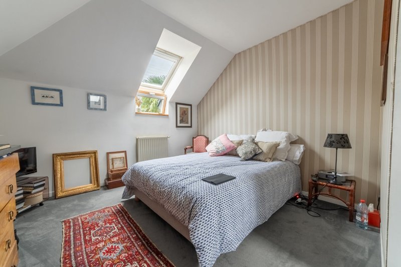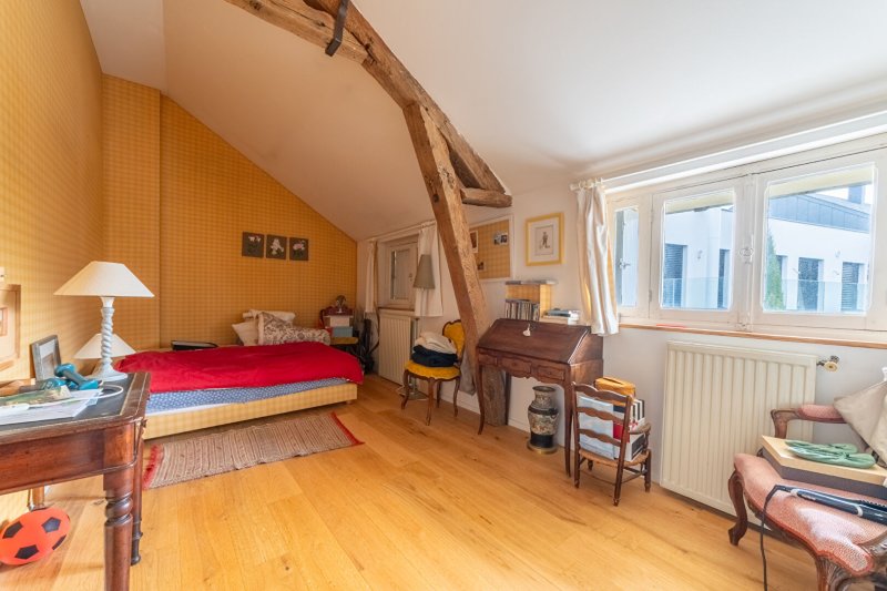 Le palier du 1er étage distribue 3 vastes chambres et une salle de bains avec WC.
