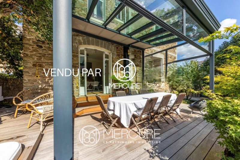 Entièrement rénovée et réaménagée, elle est extrêmement lumineuse et dispose de 195 m² sur trois niveaux et 53 m² en sous-sol. Au rez-de-chaussée, entrée avec un magnifique escalier desservant les deux étages, WC, salon avec cheminée, cuisine aménagée et équipée en partie ouverte sur la salle à manger, cette dernière bénéficiant d’un accès direct sur la terrasse et le jardin.