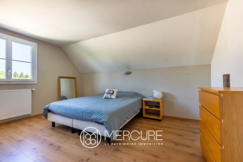 A l’étage, le palier en mezzanine sur l'entrée vient desservir la master room avec dressing et salle d'eau privative avec toilettes et à l’opposé trois chambres avec rangements et une salle de bains...