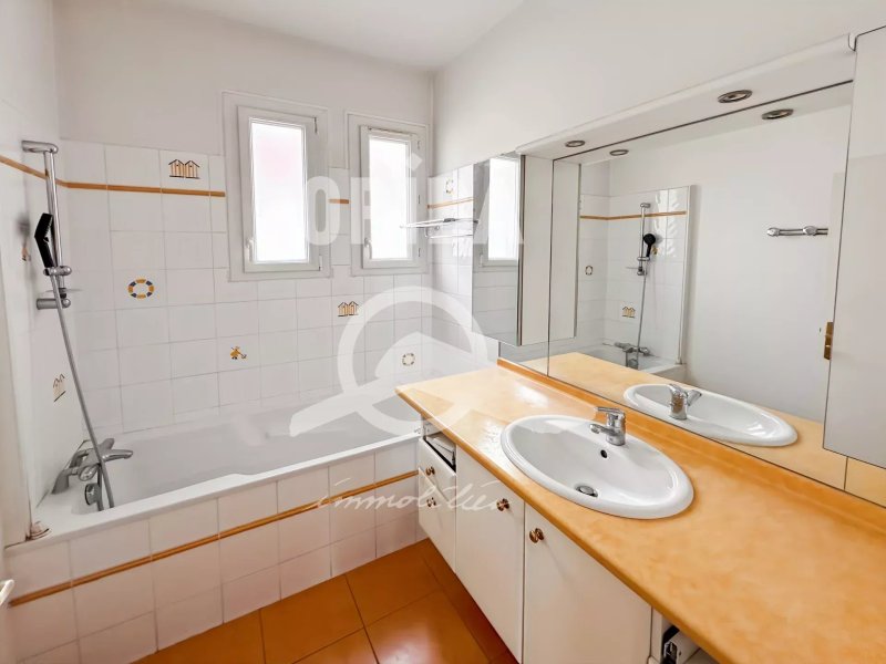 1er étage : Un palier menant à une cuisine aménagée, un vaste salon traversant surplombant le jardin, des WC séparés, une salle de bains et 2 chambres.