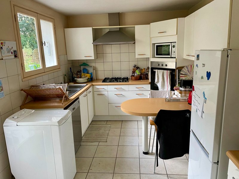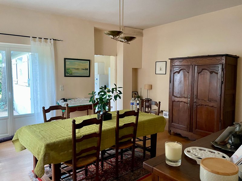 La séjour et la cuisine attenante propose une surface d'environ 35 m² propice aux moments de partage en famille avec un accès de plain pied au jardin.