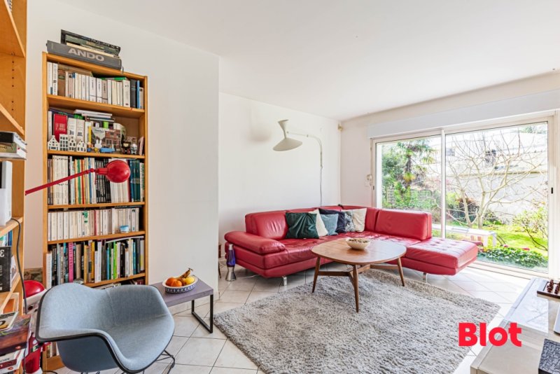Le rez-de-chaussée se compose d'une entrée, d'une cuisine indépendante, d'un premier salon d'environ 17 m², ainsi que d'une pièce de vie salon / salle à manger de 28 m² ouverte directement sur le jardin, offrant une belle perspective sur l'extérieur.