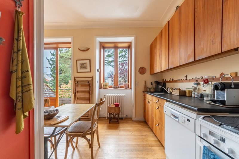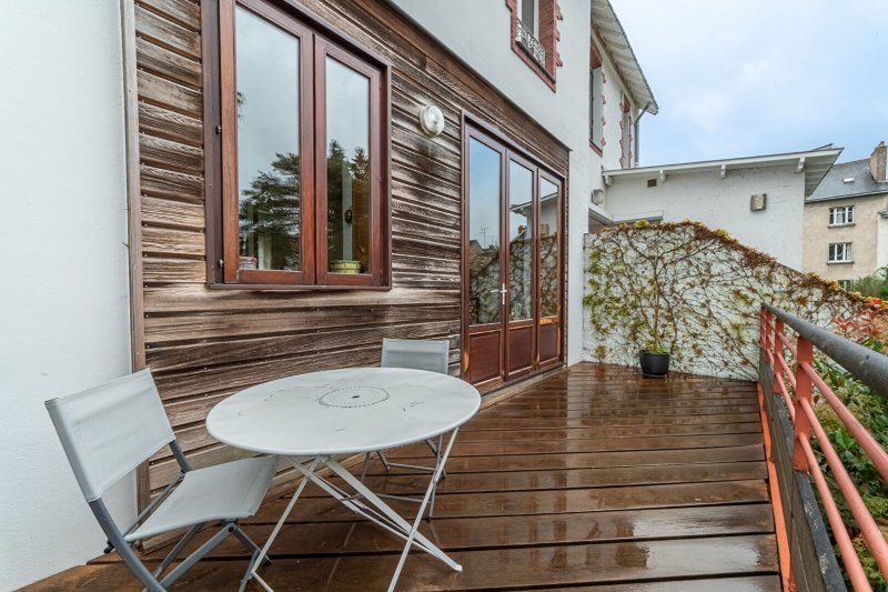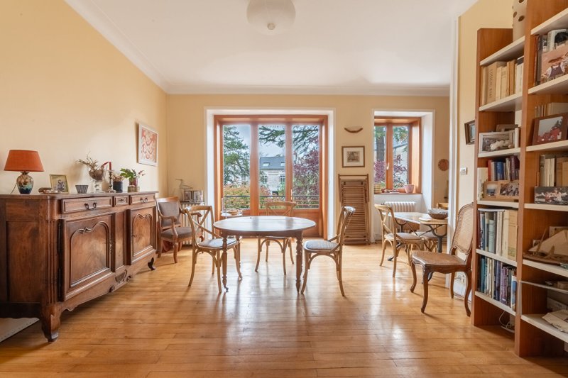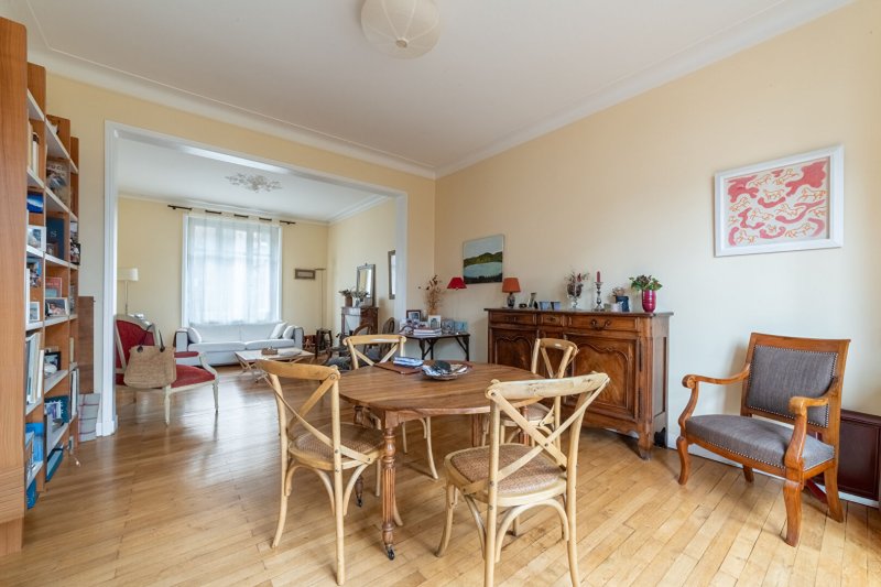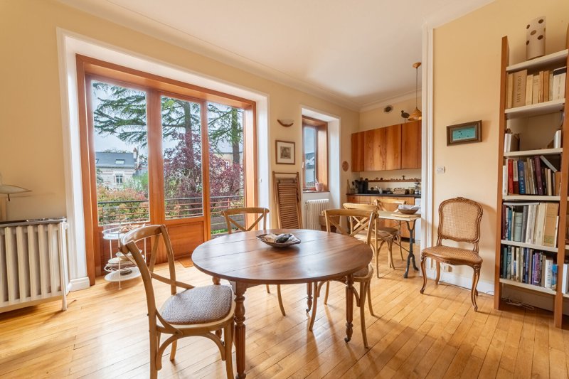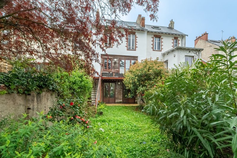 Nantes Centre - Viarme : idéalement située à deux pas des écoles, des transports, du parc de Capucins, du marché de Talensac et des commerces, maison de caractère pleine de charme, ensoleillée et fonctionnelle. Ce bien de qualité se compose d'une entrée, double réception avec cheminée et cuisine aménagée donnant sur terrasse et beau jardin ouest, 5 chambres, salle de bains, salle d'eau, cave et lingerie.