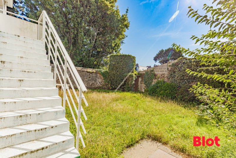 Au premier étage, un salon salle à manger très lumineux et traversant avec vue dégagée sud-ouest, une cuisine attenante (ouverture possible avec IPN) avec accès au jardin par un escalier, deux grandes chambres, salle de bain et WC séparés.