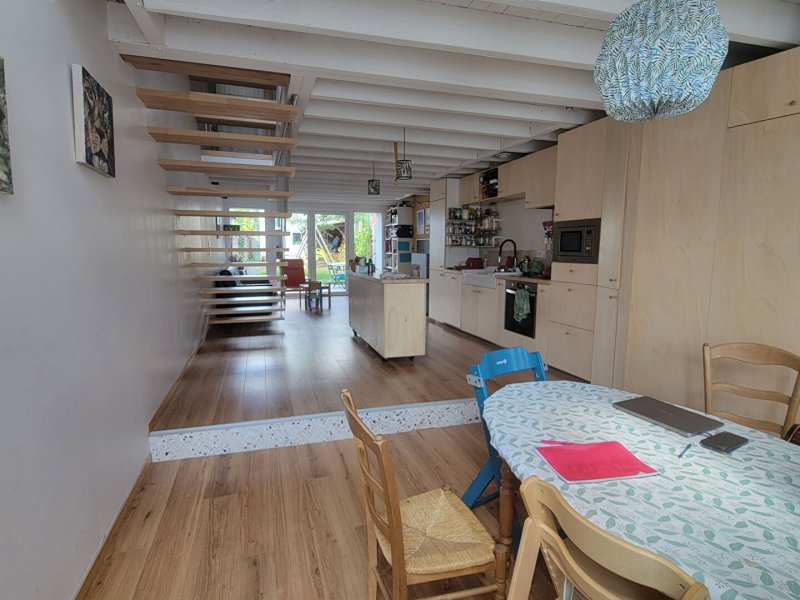 A deux pas des commerces, Maison de ville fraîchement rénovée et repensée comprenant 115m² habitable avec quatre chambres, cuisine aménagée et équipée ouverte sur pièce de vie très lumineuse (50m²). Salle de bains avec douche. Chauffage Poêle à granulés, VMC double flux, Tableau Elec refait à neuf. Dépendance de 85m². Le tout sur un charmant jardin clos et arboré de 654m².