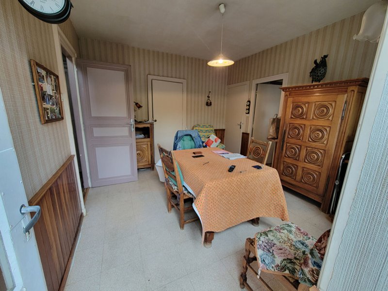 RDC : Entrée, salle à manger, cuisine équipée, salon ou chambre avec WC