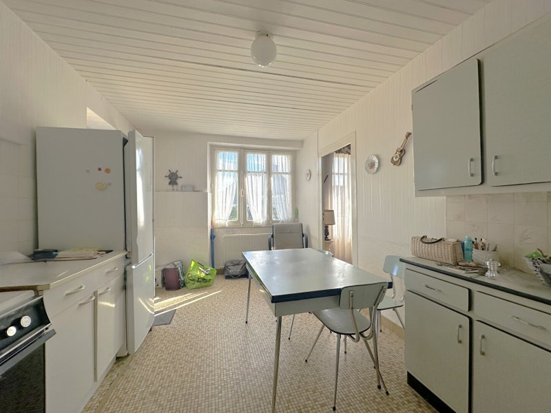 - Au rez-de-chaussée : une cuisine, une pièce de vie traversante d'environ 31 m² et une salle d'eau.