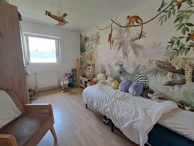 Elle comprend une entrée donnant sur sa pièce de vie de 58 m² avec cuisine aménagée et équipée, une buanderie avec grenier, 4 chambres dont une avec dressing ,une salle d'eau et un wc.