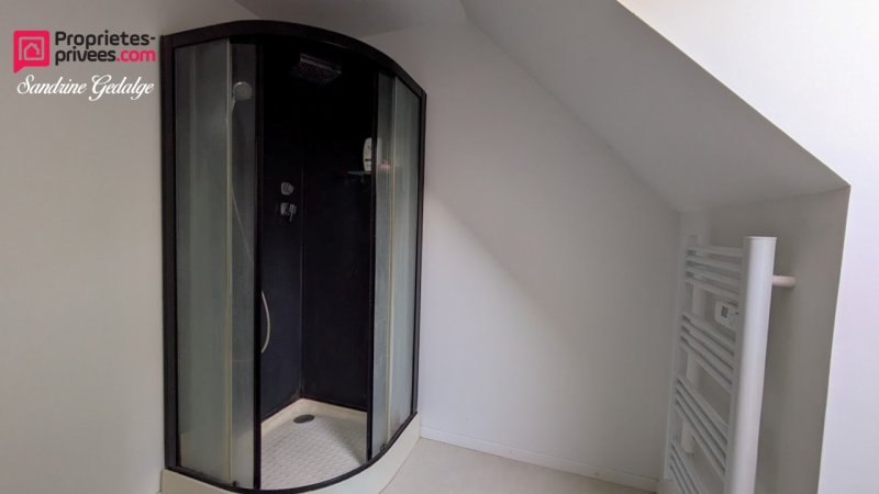 A l'étage, le palier dessert deux chambres aux beaux volumes, une salle d'eau équipée d'une cabine de douche et d'un meuble vasque, ainsi qu'un second WC indépendant. La décoration, entièrement blanche, offre une base neutre idéale pour laisser libre cours à vos envies d'aménagement et de personnalisation.