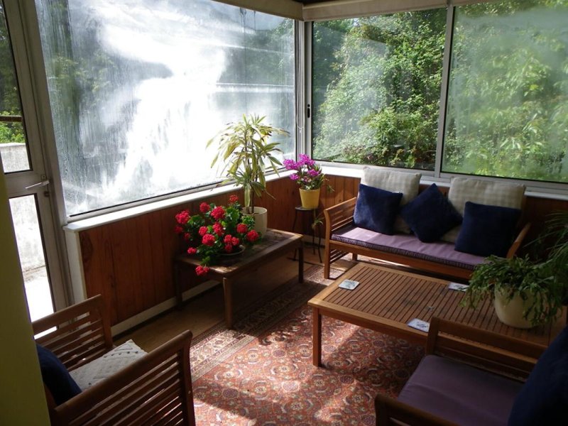 Elle est composée d'un espace de vie avec poêle à bois, cuisine équipée et 2 chambres spacieuses. Une véranda ensoleillée, une douche à l'italienne et WC séparés