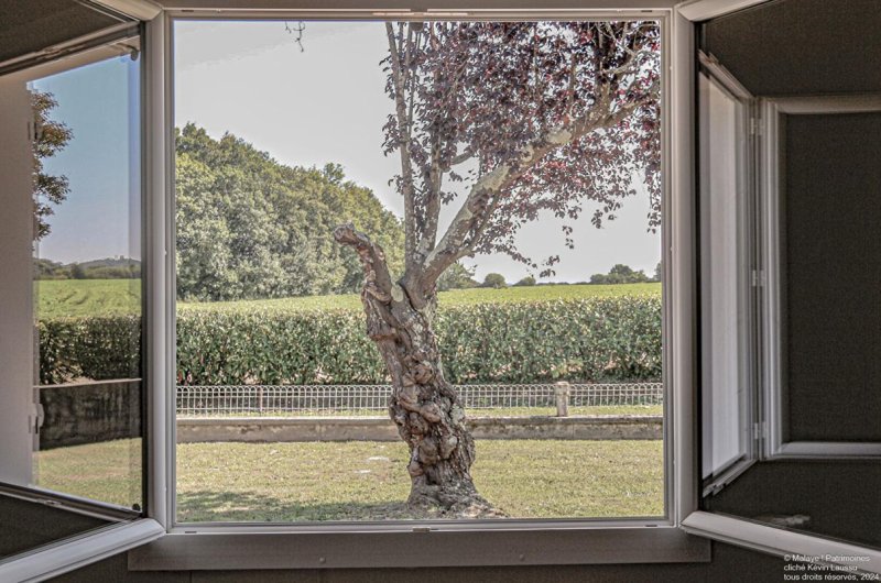 C'est ici que l'on prend la pleine mesure de la tranquillité des lieux : le regard se perd sur les champs et les bois alentour et, à l'horizon, la silhouette des Pyrénées se dessine discrètement, rappelant la majesté et la proximité de la montagne sans jamais rompre l'intimité de ce refuge. Les chambres, baignées de lumière, garantissent un calme absolu pour des nuits bercées par le seul silence de la campagne.