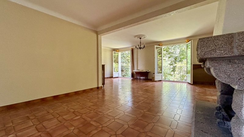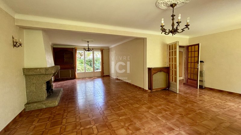 Grand séjour lumineux de plus de 44 m² exposé Sud/Nord avec cheminée, idéal pour les moments en famille.
