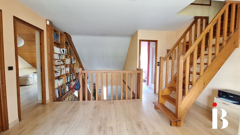 Orvault Petit Chantilly au calme, proche des commerces et du tramway, charmante maison familiale comprenant au rez-de-chaussée une belle entrée avec vestiaire, salon séjour agrémenté d'un poêle à bois, vaste cuisine équipée et aménagée. À l'étage, l'espace nuit se compose de 4 chambres, dont une suite parentale confortable, vous trouverez également une grande mezzanine baignée de lumière offrant un espace parfait pour le télétravail, complété par un bureau au 2eme étage, pour encore plus de tranquillité. Vous bénéficierez également d'un garage et d'un jardin sans vis-à-vis.