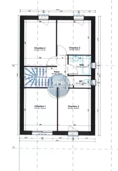 À l’étage, un palier dessert quatre chambres, une salle de bain ainsi qu’un second WC indépendant.