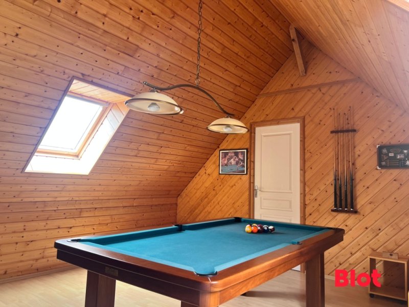 A l'étage, un palier dessert 3 chambres, une salle de bains avec WC ainsi qu'une grande pièce pouvant servir de salle de jeux ou dortoir.