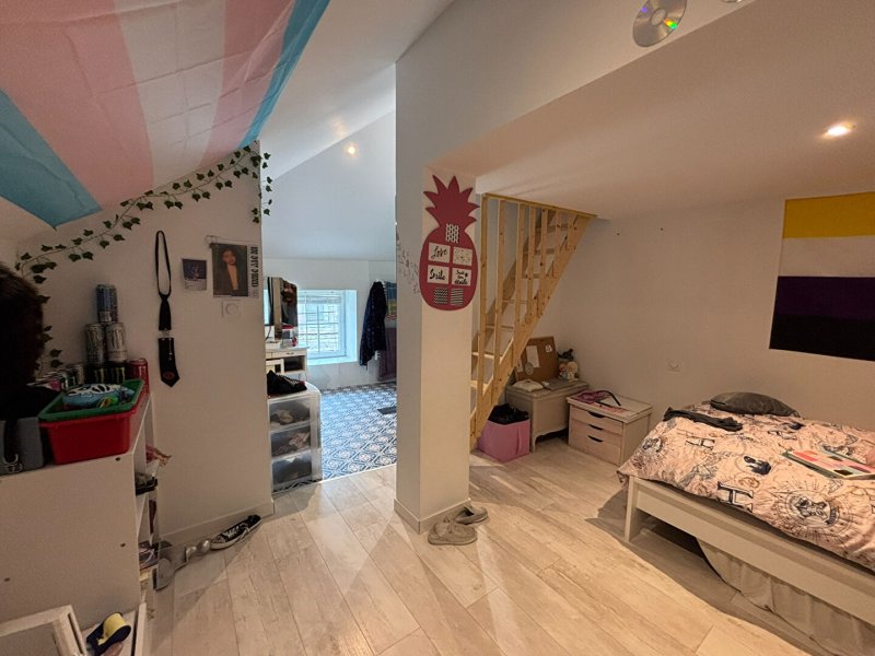 Possibilité pour du locatif de constituer 3 lots: un local commercial, un logement T2 en rez-de-chaussée et enfin un appartement T3 à l'étage.