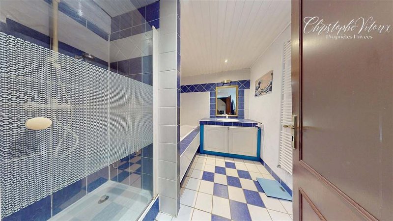 A l'étage, deux belles chambres de 27 m² et 16 m², un dressing de 4 m², une salle de bain équipée d'une baignoire balnéo et d'une douche de 7 m² ainsi qu'un WC indépendant.