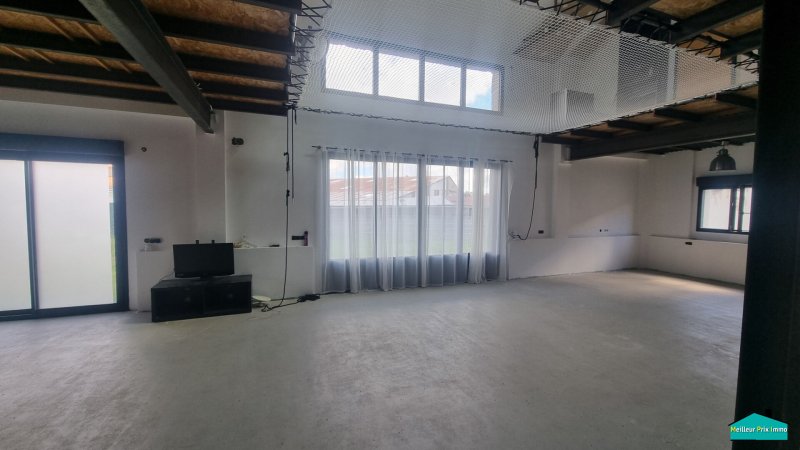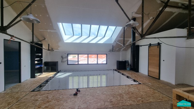 Il s'agit d'un ancien garage automobile transformé en un loft d'exception au style industriel. Sol en béton brut, charpente métallique, escalier en métal avec marches en bois, verrière de toit et grande baie vitrée....