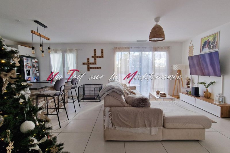 Maison de plain pied de 90m2, construite en 2019 (sous décennale) comprenant 4 pièces, 3 chambres dont une avec salle de douche, wc, salle de bain.