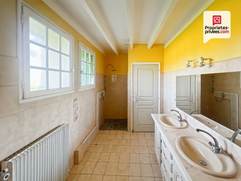 Ce bien se compose en rez-de-chaussée d'une vaste cuisine de 27 m² avec insert et accès à une terrasse couverte, d'un salon cathédrale de 37 m² avec cheminée en pierre équipée d'un insert, de 3 chambres, d'une salle de bains avec baignoire et douche, d'un cellier et de WC séparés.