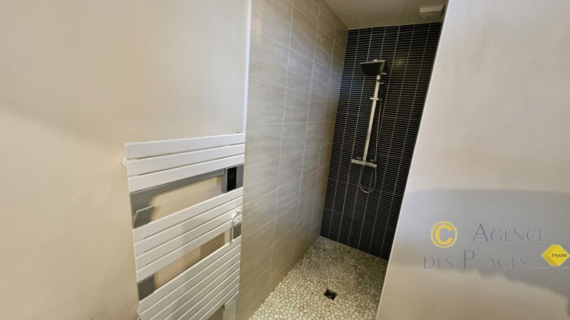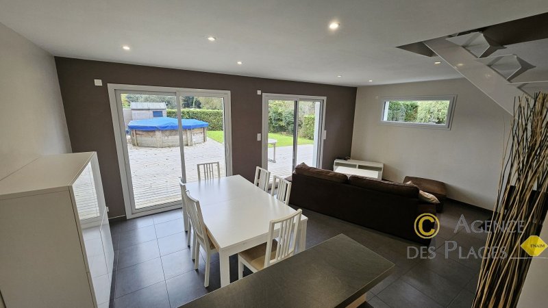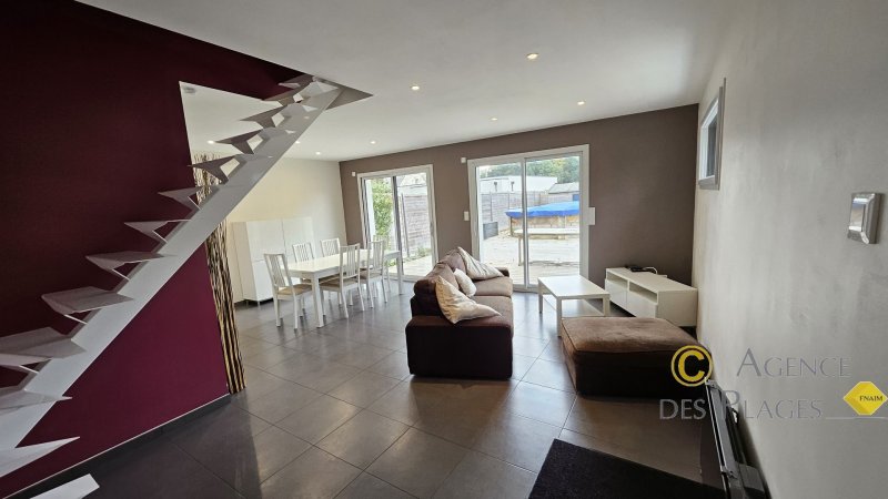 LA TURBALLE - Jolie maison contemporaine à vendre - La plage et les commerces à vélo Jolie maison contemporaine (2013) à vendre à La Turballe, située à portée de vélo de la plage et des commerces : beau séjour-salon très lumineux, cuisine ouverte aménagée-équipée, une chambre, salle d'eau (douche à l'italienne), à l'étage : palier, 2 chambres avec un grand placard chacune (poss. dressing), salle d'eau - wc, petit grenier. Grande terrasse bien exposée, beau terrain arboré de 470 m². Les informations sur les risques auxquels ce bien est exposé sont disponibles sur le site Géorisques : www.georisques.gouv.fr