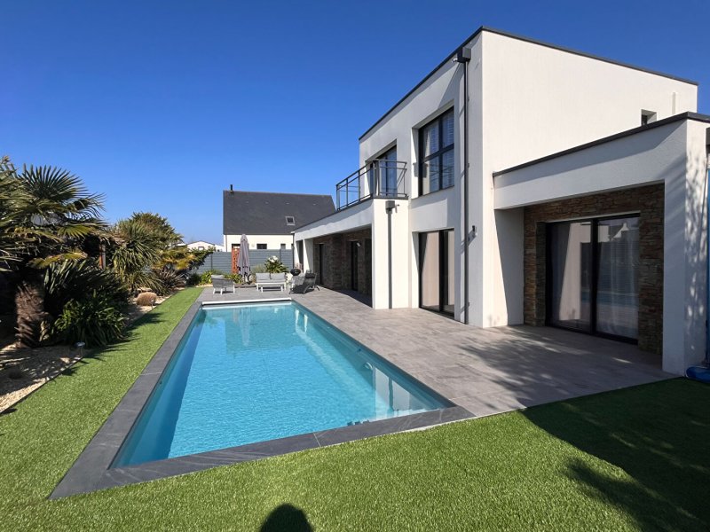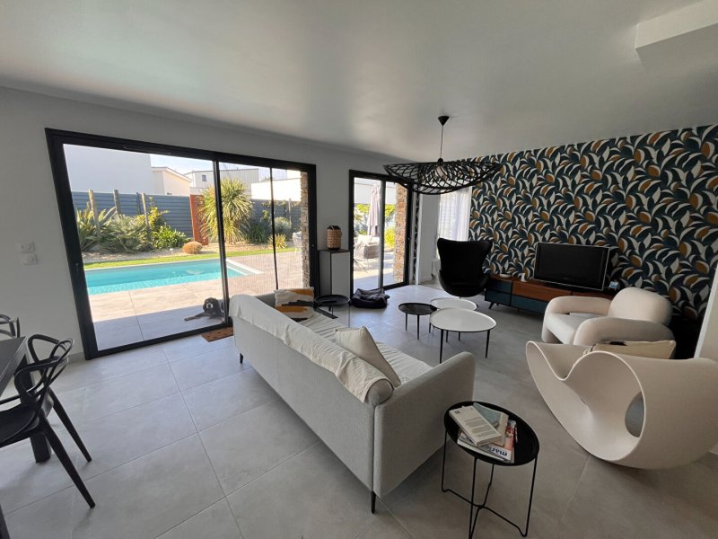 PROCHE CENTRE-BOURG ET PLAGE : Maison contemporaine construite en 2021, sur une parcelle clôturée et sécurisée, aux beaux volumes.