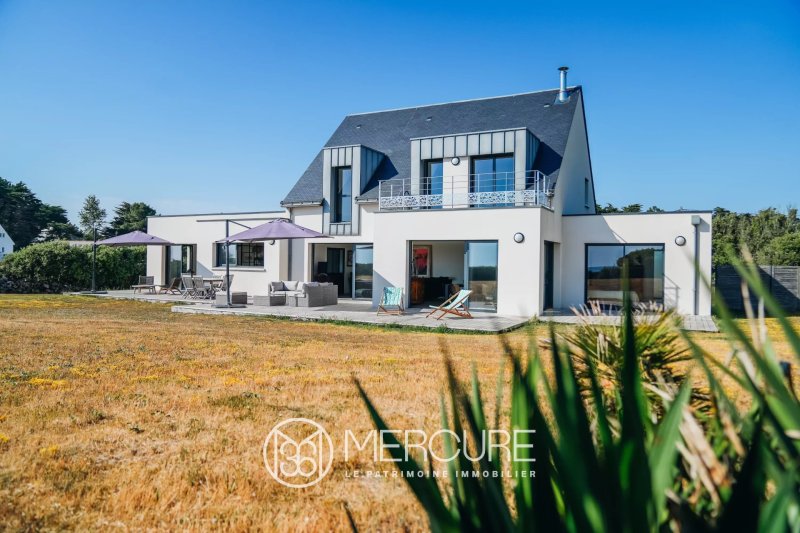 Edifiée sur une magnifique parcelle paysagée de plus de 3 000 m² en front de mer, la propriété profite d’une exposition sud-ouest idéale, sans aucun vis-à-vis et d’une vue panoramique dégagée sur l’océan avec toute la presqu'île de Pen-Bron jusqu’à la pointe du Croisic. La maison développe 224 m² habitables sur deux niveaux, dont 164 m² de plain-pied, parfaitement distribués.