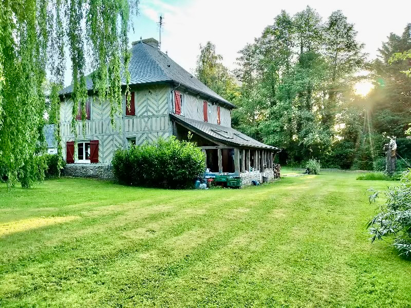 Très belle propriété du XVIII -ème siècle, au Coeur du pays d'Auge, à 8 minutes de Pont L'Evêque, et de Beuzeville, à 15 minutes de Deauville ou de Honfleur. Edifié sur un magnifique parc arboré de plus d'un hectare avec une partie boisée, cet ensemble immobilier , manoir et son bâtiment annexe en colombages et pierres, vous offre un beau cadre de vie et une exposition optimale. La maison principale, très conviviale, se compose au rez de chaussée, d'une cuisine aménagée et équipée, récente et très fonctionnelle, avec à proximité une terrasse couverte de 25m², avec la possibilité de la fermer et d'en faire une pièce à vivre très confortable ; un toilette et une buanderie, un salon et une salle à manger avec respectivement deux cheminées en pierre. Au premier étage, l'escalier en tomettes vous conduit à deux belles chambres dont une avec sa salle de douches privative, un bureau et un toilette indépendant ; Au deuxième et dernier étage, un grande chambre sous combles avec rangements. Sans aucun vis à vis, le bâtiment annexe, sur deux niveaux , ancienne étable est actuellement à usage de garage avec un grand espace de stockage avec chambre froide vous offre l'opportunité d'une deuxième maison à réhabiliter pour un projet de gîte ou de maison d'amis, 112 m² au sol + étage. La maison a toujours été entretenue, les toitures en ardoises ont été refaites en 2003, tout comme la micro-station ( assainissement individuel). Cette propriété est idéale pour les amoureux de la nature qui ont un projet d'achat de plusieurs maisons ( me contacter) . Le chauffage est au fuel, Double Vitrage. la Taxe foncière est de 1080 eurosuros.