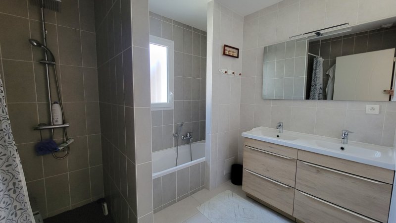 Elle comprend une entrée indépendante, une grande pièce de vie avec cuisine aménagée et équipée de près de 50m², 4 chambres dont une suite parentale avec dressing et salle d'eau, une salle de bain.