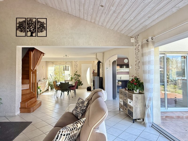 Seluement à 1 km du bourg (très rapide par petits chemins). Cette maison à la qualité irréprochable ! Fonctionnelle, lumière et volumes. Les beaux jours arrivent pour profiter du beau jardin avec vue sur les chevaux. Vous profiterez pleinement de la piscine chauffée également. La maison se compose d'une entrée, bureau, pièce de vie traversante (accès terrasses), cuisine A-E (accès terrasse), lingerie, dégagement, salle d'eau, wc, chambre. Etage : palier (bureau), 3 chambres, salle d'eau. Garage attenant + garage non attenant. Chalet de jardin complète ce bien. Les informations sur les risques auxquels ce bien est exposé sont disponibles sur le site Géorisques : www.georisques.gouv.fr
