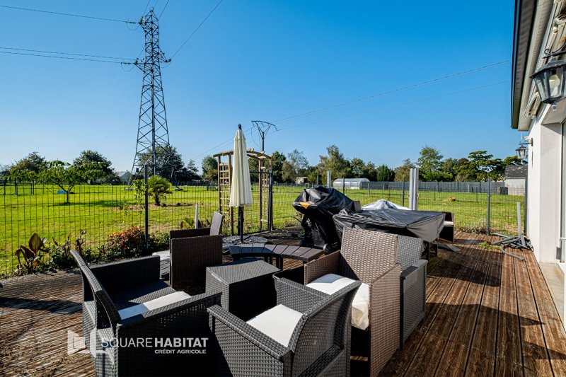Située dans un environnement agréable et paisible, cette maison de 2013 entièrement de plain pied se compose d'une pièce de vie ouverte avec cuisine aménagée et équipée d'environ 45m² avec un accès direct sur une terrasse de 60m².