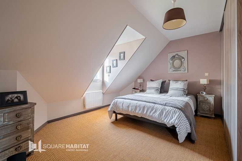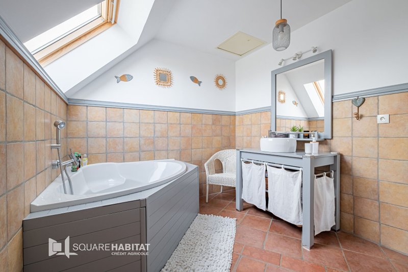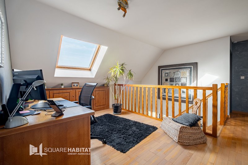 A l'étage, une grande mezzanine donne accès à trois chambres supplémentaires, idéales pour une famille ainsi, qu'une salle de bains, des toilettes et d'un dressing.