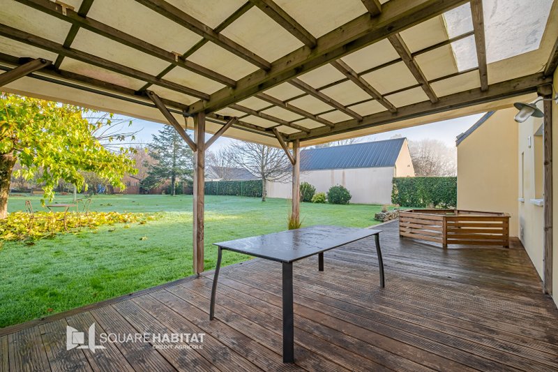 Edifiée sur une parcelle de plus de 1400m², la maison dispose d'un jardin soigné, d'une agréable terrasse avec pergola en bois, propice aux moments de détente. Un garage d'environ 32m² et un carport complètent la maison, apportant praticité et confort au quotidien.