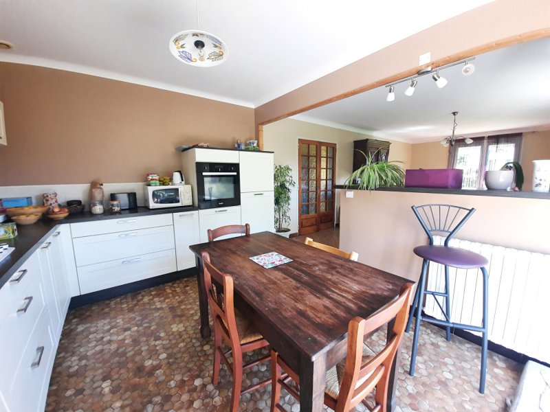 Située dans un environnement paisible, cette maison spacieuse et lumineuse est idéale pour accueillir une grande famille. Elle offre une véritable vie de plain-pied avec cinq chambres, un grand séjour ouvrant sur le jardin et une cuisine aménagée.